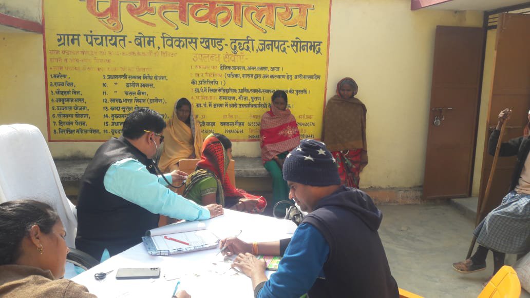 दुद्धी सोनभद्र विकासखंड अंतर्गत मोबाइल मेडिकल यूनिट टीम द्वारा ग्राम पंचायत भवन पर निशुल्क स्वास्थ्य परीक्षण 45 मरीजों का किया गया साथ ही मेडिकल टीम द्वारा निशुल्क दवा मरीजों को वितरित किया गया।