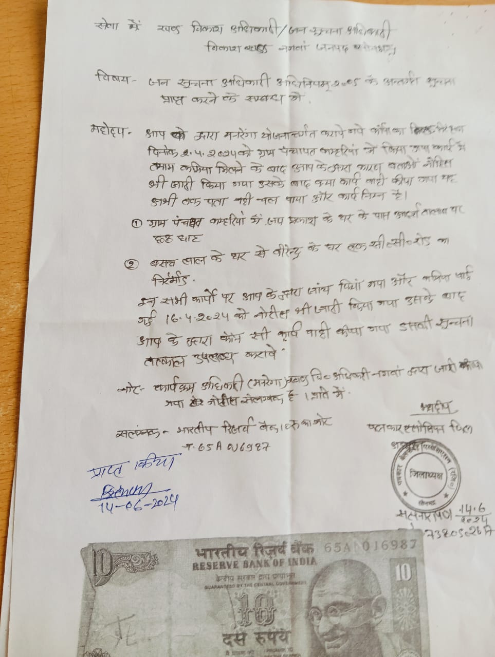 खण्ड विकास अधिकारी उत्कर्ष सक्सेना के द्वारा आकस्मिक दौरा कर ग्राम पंचायत कम्हरियां में मनरेगा योजनान्तर्गत करायें गये कार्यों की दिनांक 2 अप्रैल 2024को ग्राम पंचायत का निरीक्षण किया गया ।कार्य जयप्रकाश के घर के पास आदर्श तालाब पर छठ घाट का निर्माण। जांच के दौरान मिला की पुरा कार्य बालू के जगह भस्सी स्टोन डस्ट से कराया गया है वहीं बसन्त लाल के घर से वीरेंद्र के घर तक सी 0सी0 रोड का कार्य कराया गया है जांच में मिला की सी 0सी0 रोड बीच की मोटाई 9.75 से0 मी 0 किनारे पर 11से0मी0 पाई गई उक्त कार्य में जे 0एस0 बी 0 का प्रयोग नहीं दीया गया है । जांच में मिली कमियों को देखते हुए कार्यक्रम अधिकारी मनरेगा खण्ड विकास अधिकारी के द्वारा 16 अप्रैल 2024 को कारण बताओ नोटिस संबंधित ग्राम पंचायत अधिकारियों को जारी किया गया ।इसमें क्या कार्य वाही किया गया वहीं जानने के लिए पत्रकार वेलफेयर एसोसिएशन के जिलाध्यक्ष अध्यक्ष सत्यनारायण के द्वारा 16जुन को जन सुचना अधिकार के तहत सुचना मांगी गई थी लेकिन एक माह बित जाने के बाद भी सुचना नहीं उपल्ब्ध कराया गया सुचना न देना इससे यह प्रतीत होता है कि कार्य में बड़ा घोटाला हुआ है भ्रष्टाचार को दबाने के लिए सुचना नहीं दिया जा रहा है सुबे मुख्यमंत्री जी कहते हैं की प्रत्रकारो के साथ भेद भाव नहीं होना चाहिए यहां तो प्रत्रकार को ही सुचना नहीं देना भ्रष्टाचार को बढ़ावा देने जैसा है। सम्बंधित अधिकारियों को संज्ञान लेना अति आवश्यक है।