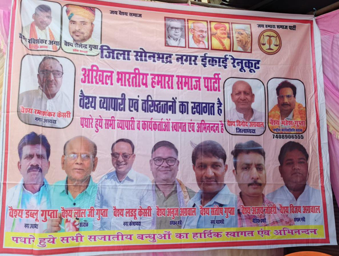 रेनुकूट अखिल भारतीय हमारा समाज पार्टी के तत्वाधान में 79वाँ स्वतंत्रता दिवस समारोह मनाया गया। इस स्वतंत्रता दिवस के पावन अवसर पर मुख्य अतिथि सोनभद्र के जिला अध्यक्ष वैश्य विनोद अग्रवाल तथा नगर अध्यक्ष वैश्य रमाशंकर केसरी के द्वारा पार्टी कार्यालय पर राष्ट्रीय ध्वज बड़े ही उत्साह के साथ फहराया गया।