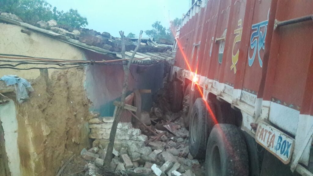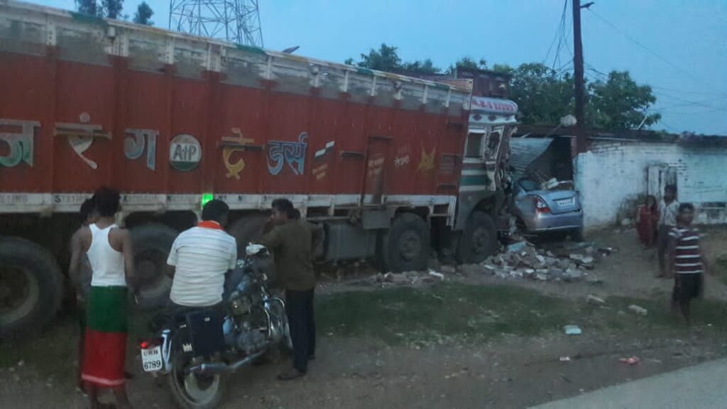 प्राप्त जानकारी के अनुसार सोमवार की भोर में लगभग 03:45 बजे के करीब ओवरलोड एक बालू लदा ट्रक लोकेशन मिलते ही परिचालक ओवर लोड बालू लदा ट्रक लेकर ओवर स्पीड में चल दिया और डाला चढ़ाई उतरते समय पहले एक टिपर को जोरदार धक्का मार दिया और टिपर डिवाइडर पार हो गया फिर एक ट्रक एक मकान में घुस गया,लेकिन संयोग अच्छा था, मकान स्वामी रामचंद्र यादव उर्फ मुन्ना यादव पुत्र स्व हरिहर युवक निवासी डाला चढ़ाई के परिवार में किसी भी सदस्यों में कोई हताहत नहीं हुआ इस घटना में मकान सहित खडी इंडिगो कार की क्षति हो गई।