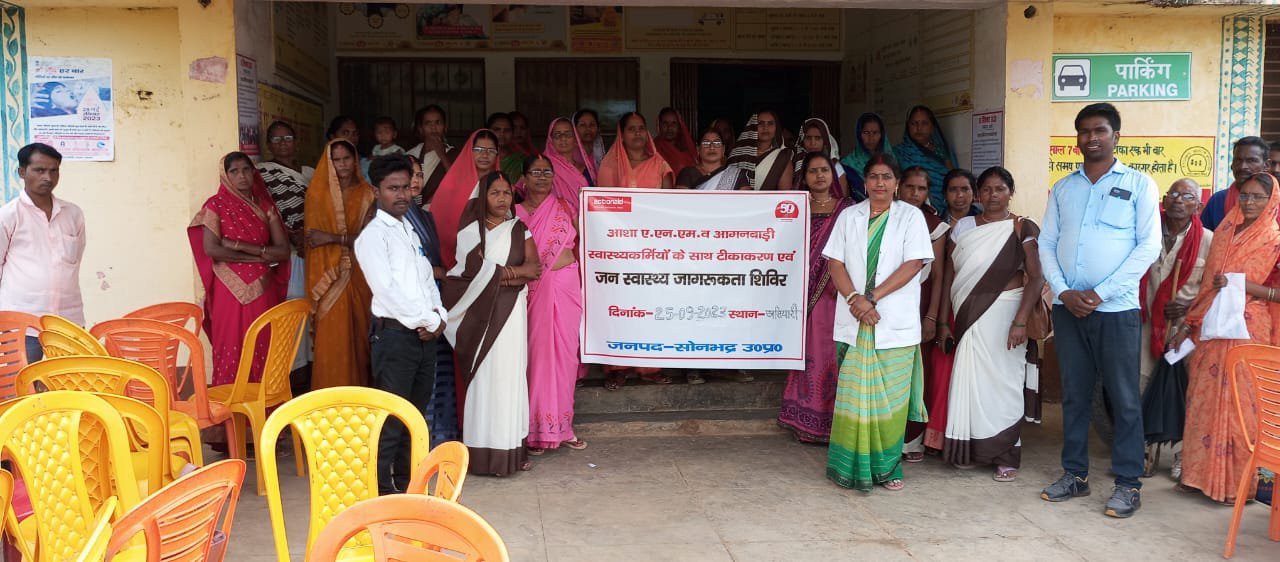 जनपद सोनभद्र के विकाश खंड नगवा के पीएचसी खलियारी में आशा ,एएनएम , आगनवाड़ी , व सरकारी स्वास्थ्य कर्मियों के साथ टीकाकरण एवम जन स्वास्थ्य जागरूकता शिविर का आयोजन एक्शन एड द्वारा किया गया । एएनएम सरस्वती ने टीकाकरण के बारे में जानकारी दी और उन्होंने बताया की बच्चो के जीवन और भविष्य की सुरक्षा के लिए सबसे प्रभावी और किफायती तरीकों में से एक है – टीकाकरण ।