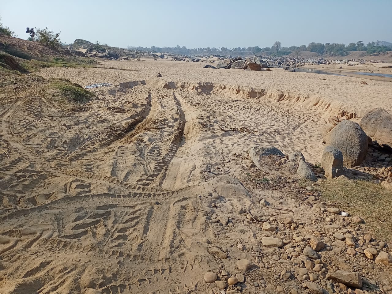 - राजस्व विभाग द्वारा खोदे गढ्ढे के बगल से नया रास्ता बना कर रात भर ढ़ोया बालू।