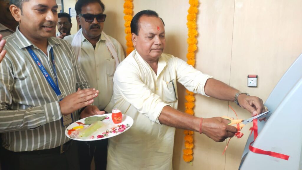 दुद्धी सोनभद्र एचडीएफसी बैंक शाखा दुद्धी पर 24 घण्टे उपभोक्ताओं के लिए धन जमा व निकासी की सुविधा के मद्देनजर दुद्धी में पहला ” कैश रिसाइक्लर मशीन ” इस मशीन के द्वारा ग्राहकों को नगदी जमा करने और निकालने की सुविधाएं उपभोक्ताओं को अब मिल सकेगी। उक्त मशीन का वैदिक मंत्रोचारण के बीच जजमान दीपक कुमार ने पूजन का कार्य सम्पादित पुरोहित सुरेंद्र कुमार मिश्रा द्वारा मंत्रोच्चारण के बीच अक्षत, पुष्प, धूप, दीप निवैद्य के सानिध्य में सम्पन्न कराया। कैश रिसायक्लर मशीन का उद्घाटन नगर पंचायत चेयरमैन कमलेश मोहन ने फीता काटकर व दीपप्रज्ज्वलन कर किया।