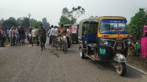 - वाहन पर सवार भागीरथी मौर्य बाल बाल बचे।
