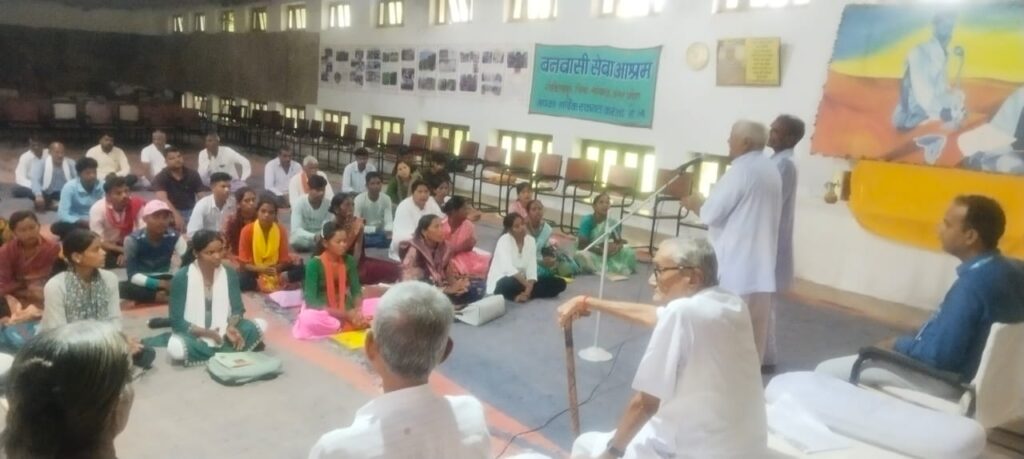 म्योरपुर ब्लॉक के गोविंदपुर स्थित बनवासी सेवा आश्रम के विचित्रा महा कक्ष में बुधवार को दो ब्लॉक के 30 ग्राम स्वराज्य सभा में चले संविधान यात्रा के पहले चरण के समापन पर अनुभव कार्यक्रम का आयोजन साहित्यकार और आश्रम के अध्यक्ष अजय शेखर के अध्यक्षता में आयोजित की गई ।