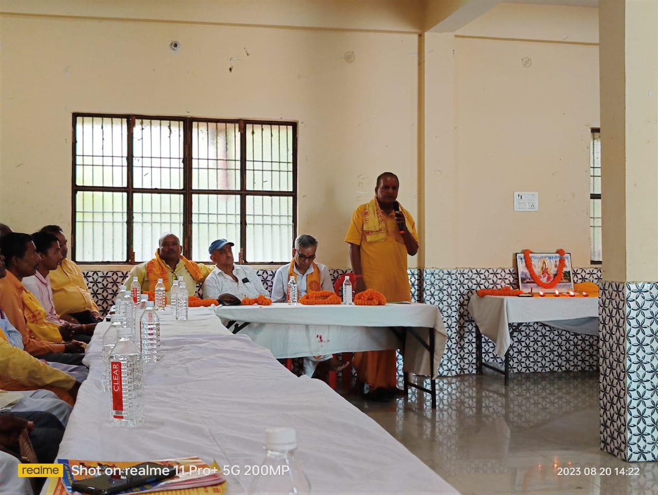-दुद्धी सोनभद्र शांतिकुंज हरिद्वार के निर्देशन में होटल ग्रीन स्टार दुद्धी में गायत्री परिवार की बैठक गायत्री महामंत्र के उच्चारण के बीच 21वीं सदी उज्जवल भविष्य, हम बदलेंगे युग बदलेगा की परिकल्पना के साथ गायत्री परिवार जनपद सोनभद्र के जिला संयोजक श्री राजकुमार तरुण जी,ट्रस्टी अरविंद कुमार, आनंद शंकर गुप्ता, गोविन्द प्रसाद,डॉक्टर हर्षवर्धन प्रजापति,प्रदीप कुमार गुप्ता प्रमुख जनों के मार्गदर्शन में गायत्री परिवार सृजनकर्ता गुरुदेव वेदमूर्ति तपोनिष्ठ पंडित श्रीराम शर्मा आचार्य जी व वंदनीय माता भगवती शर्मा जी के विचारों को जन-जन तक पहुंचाने के लिए होटल ग्रीन स्टार दुद्धी में तहसील स्तरीय विभिन्न क्षेत्रों से पधारे गायत्री परिवार प्रज्ञा मंडल की उपस्थिति में गायत्री परिवार तहसील प्रमुख का दायित्व जितेन्द्र कुमार चन्द्रवंशी को संकल्पों के बीच प्रदान कराया गया l वहीं दुद्धी विकासखंड का प्रमुख पन्ना लाल कुशवाहा को संकल्पों को बीच दायित्व सौंपी गई l 1 सप्ताह के अंदर ब्लॉक एवं तहसील स्तर की कमेटी गठित जल्द की जाएगी l जिला संयोजक राजकुमार तरुण जी ने अपने उद्बोधन में कहा कि शांतिकुंज हरिद्वार के निर्देशन में हम सभी को कार्य करना है और घर-घर गायत्री महामंत्र पहुंचना है l डॉक्टर हर्षवर्धन प्रजापति द्वारा उद्बोधन में कहां गया की गुरुदेव के साहित्य की उपलब्धता कर प्रसार किया जाएगा l जिले से पधारे अरविंद कुमार सिंह द्वारा गायत्री परिवार के सभी भाइयों को अनुशासन,संयम, सदभाव एवं शांतिकुंज के बताएं मार्गो पर चलने का संकल्प दिलाया l उदय लाल मौर्य ने गायत्री महामंत्र पर प्रकाश डाला l बैठक का प्रारंभ दीप जलन एवं गायत्री प्रतिमा पर माल्यार्पण कर प्रारंभ किया गया l इस मौके पर हुलास प्रसाद यादव,, महेशानंद सिंह भाई,रामदास कुशवाह, रामेश्वर प्रसाद राय, शिवकुमार,पन्नालाल कुशवाहा,नंदलाल अग्रहरि एडवोकेट,उमाशंकर प्रजापति, रामाधार चौबे, रवि प्रकाश, जानकी शरण लव -कुश प्रसाद,गिरवर सिंह, महेंद्र नाथ, उमेश कुमार जयसवाल, रामनाथ, जीवन राम चंद्रवंशी, भगवान दास, शिव पलटन, आदि दर्जनों गायत्री परिवार के जन उपस्थित रहे l संचालन शिव शंकर कुशवाहा द्वारा किया गया lबैठक का समापन गायत्री मंत्र के शांति पाठ से हुआ l