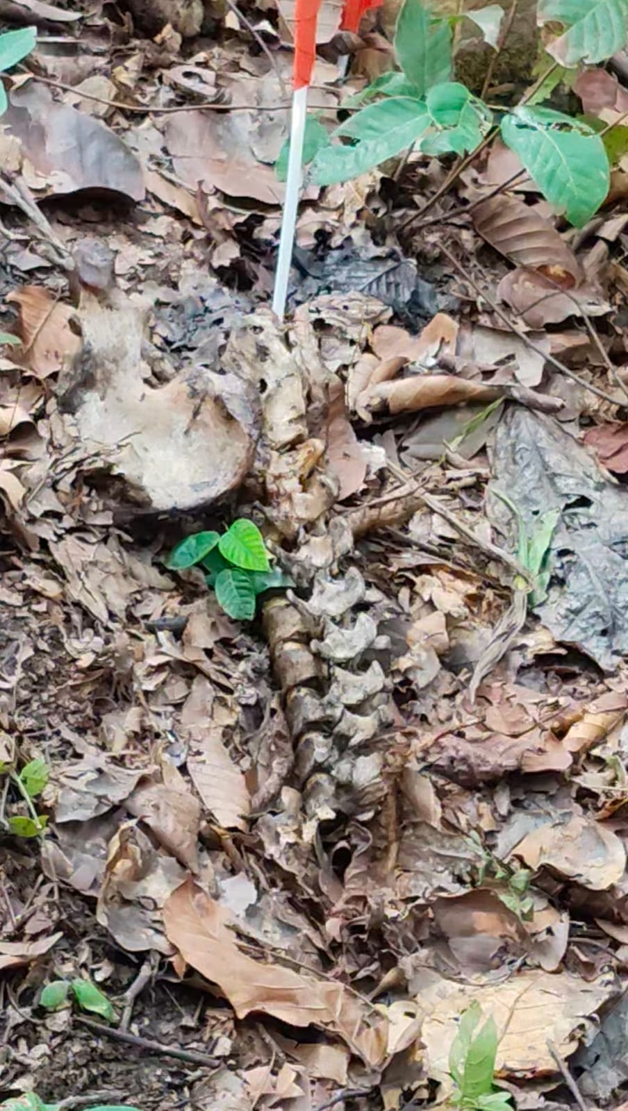 जांच में टीम को रीढ़ की हड्डी, फीमर, बाल, जबड़ा, हाथ में पहना जाने वाला कंगन समेत कई हिस्से जंगल में इधर-उधर बिखरे मिले। वहीं पास से नीले और नारंगी रंग की एक तिरपाल बरामद हुई। तिरपाल को देखकर संदेह है कि किसी व्यक्ति ने शव को इसमें लपेटकर जंगल में फेंका गया होगा, जिसे बाद में जंगली जानवरों ने क्षत-विक्षत कर दिया।