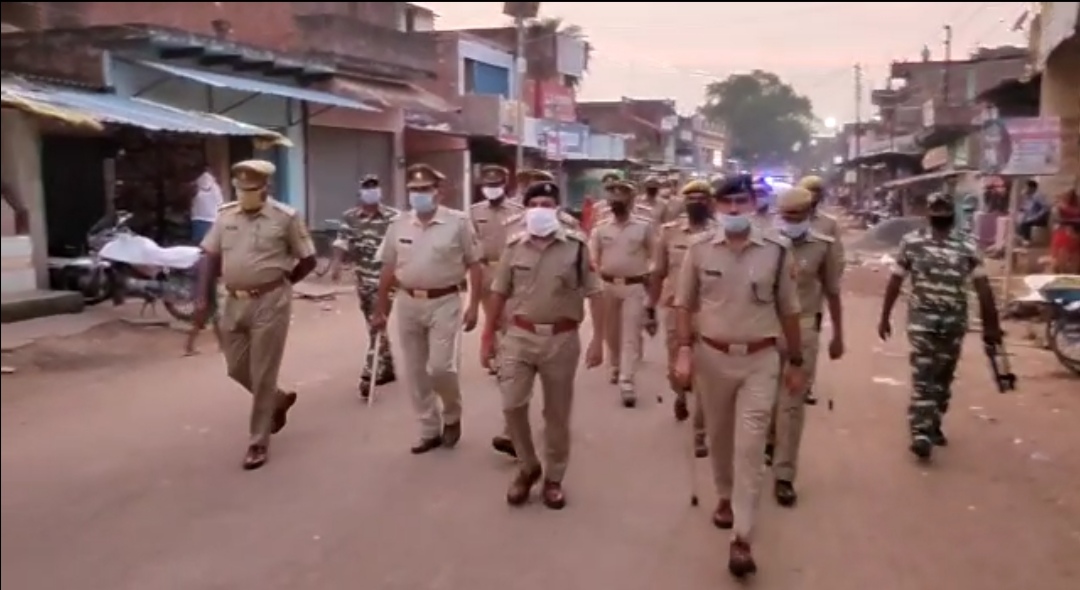सोनभद्र जनपद के पुलिस अधीक्षक आशीष श्रीवास्तव द्वारा पन्नूगंज थाना क्षेत्र के रामगढ़ बाजार में जनता में सुरक्षा की भावना के दृष्टिगत फुट पेट्रोलिंग/रुट मार्च किया गया।