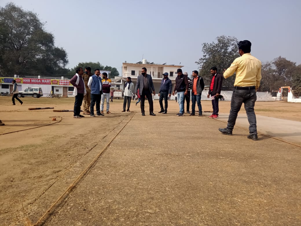 दुद्धी सोनभद्र टाउन क्रिकेट मैदान पर आयोजित 34 वा अंतरराज्यीय क्रिकेट टूर्नामेंट के पिच का उपजिलाधिकारी दुद्धी रमेश कुमार ने मुआयना किया और आयोजक को आवश्यक दिशा निर्देश दिया।