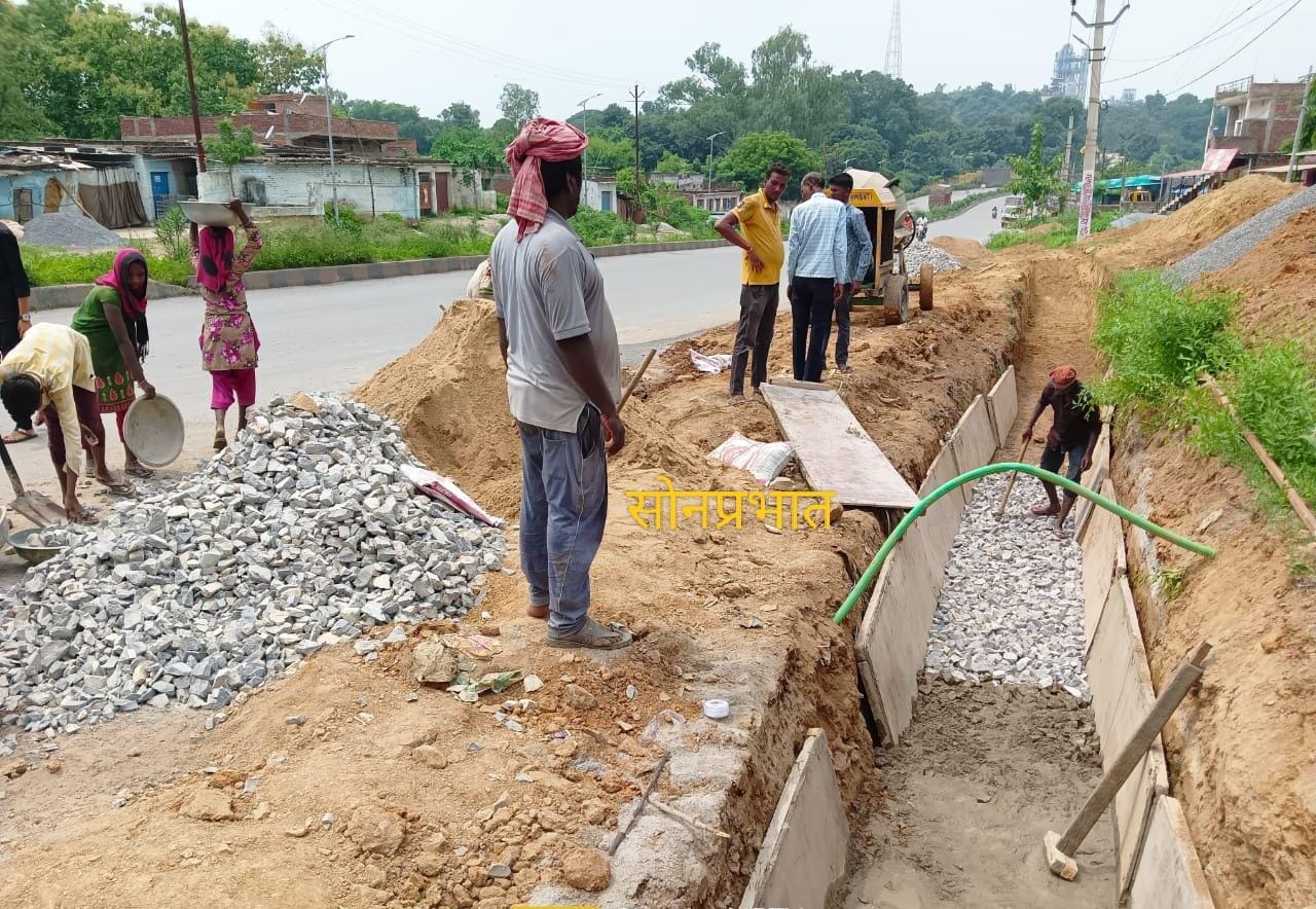 डाला सोनभद्र । जहां सरकार मजदूरों को रोजी रोटी देने में परेशान है वही खोखले विकास का खुला खेल का जिता जागता डाला बाजार – नगर पंचायत का विकास, मजदूरों के पेट पर लात मार रहे ठेकेदार और नजर अंदाज कर रहे जिम्मेदार।नगरपंचायत – डाला बाजार स्थित वार्ड 4 में डाला चढाई पेट्रोल टंकी से नाले तक कवर्ड नाली का निर्माण होना था जहां मजदूरों के हकों का हनन कर जे.सी.बी. मशीन से कार्य कराने में नगर वासियों में नाराजगी दिखी। वही स्थानीयों ने बताया कि नगर