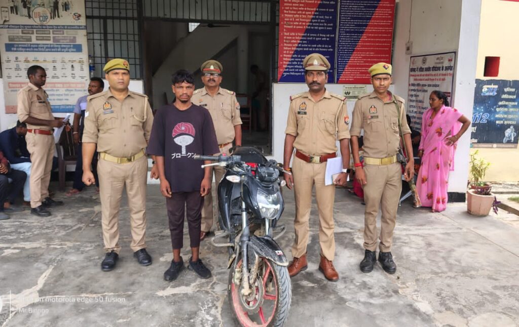 जिसके कब्जे से चोरी की एक अदद TVS Apache मोटर साइकिल बरामद हुआ। उक्त गिरफ्तारी व बरामदगी के सम्बन्ध मे थाना चोपन पर मु0अ0सं0 330/25 धारा धारा 317(2) बीएनएस अभियोग पंजीकृत कर विधिक कार्यवाही किया जा रही है। गिरफ्तार करने वाली टीम