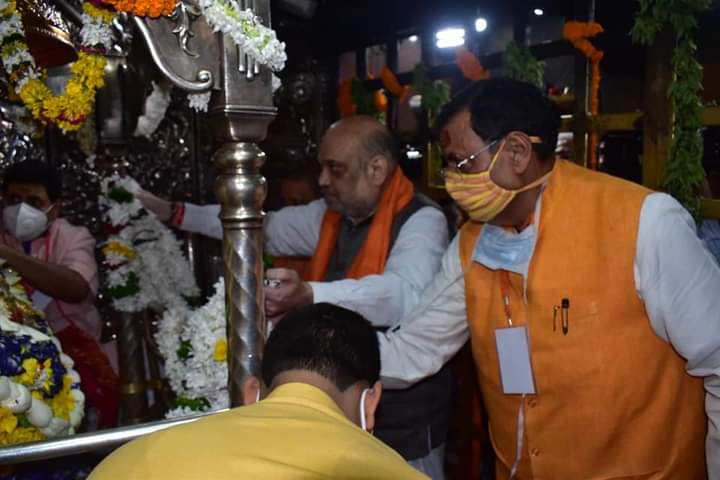 विंध्याचल,मीरजापुर।रविवार की दोपहर 3 बजकर 5 मिनट पर विंध्य धाम पहुंचते ही गृहमंत्री अमितशाह ने मां विंध्यवासिनी का पूजन अर्चन किया व तत्पश्चात विंध्य कॉरिडोर का भूमिपूजन किया। वहीं मुख्यमंत्री योगी आदित्यनाथ विंध्यवासिनी मंदिर से पूजनस्थल तक गृहमंत्री को कॉरिडोर की योजनाओं की जानकारियां देते नजर आए।