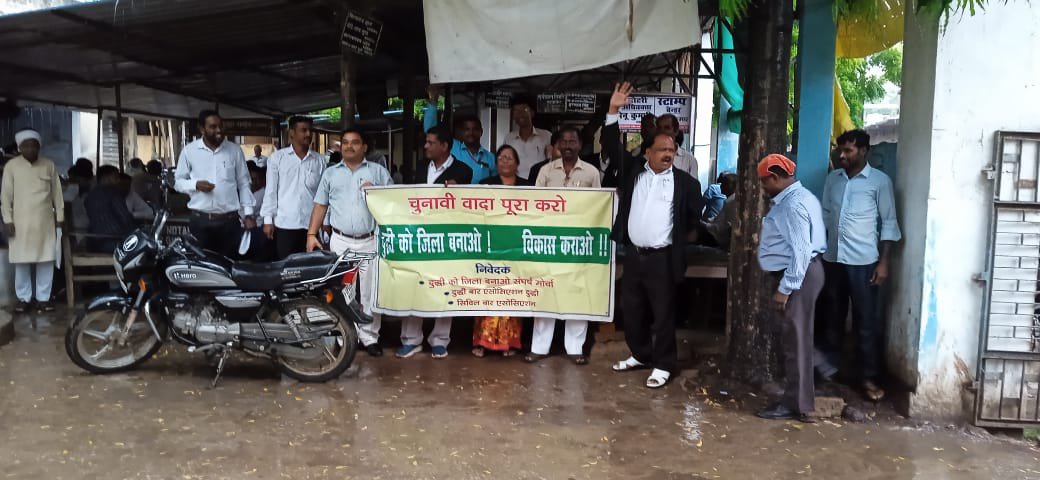 दुद्धी बार संघ के पूर्वअध्यक्ष ने कहा रामपाल जौहरी कि जिले से संबंधित कार्य के लिए लोगों को डेढ़ सौ किलोमीटर का सफर करना पड़ता है अगर काम नहीं हुआ तो वापस आना पड़ता है आने जाने को लेकर 300 किलोमीटर हो जाता है उसके बाद भी सरकार आम जनता की समस्याओं के प्रति गंभीर नहीं दिख रही है। सिविल बार संघ के पूर्व सचिव राम जी पांडे ने कहा की हाल में हुए विधानसभा चुनाव में प्रदेश के मुख्यमंत्री योगी आदित्यनाथ दुद्धी आए हुए थे ।उन्होंने आम जनता से कहा था दुद्धी विधानसभा क्षेत्र के विधायक को जीत आओगे ना तो भीड़ भरी आम जनता ने कहा कि प्रत्याशी को जिताएंगे और प्रत्याशी जीत भी गए विधानसभा पहुंच भी गए सरकार भी बन गई उसके बावजूद भी जिला मुख्यालय के नाम पर मुख्यमंत्री के स्वर कड़े केकड़े ही हैंl उन्होंने कहा कि शीघ्र ही जिला से संबंधित मांग को लेकर भारत के प्रधानमंत्री से मुलाकात कर अपनी समस्याएं रखेंगेl पूर्व अध्यक्ष प्रेमचंद यादव ने कहा कि क्षेत्र के आदिवासी गरीब लोगों को न्यायालय या जिलाधिकारी से संबंधित मुकदमों के पैरवी के लिए जिला मुख्यालय जाना पड़ता है सुबह जाता है फिर रात में लोग लौट पाते हैं यहां के न्यायालय से पिपरी अनपरा थानों के आईपीसी के मुकदमे भी जिला मुख्यालय पर सुनाई होती है जो यहां के जनता के लिए बहुत बड़ा नाइंसाफी है उन्होंने कहा कि अगर सारे समस्याओं का समाधान शीघ्र नहीं होता है तो संघर्ष समिति के लोग और अधिवक्ता आंदोलन के लिए मुखर होंगे जिसके जिम्मेदारी शासन की होगीl इस मौके पर विजय सिंह राम जी पांडे अरुणोदय जौहरी छोटे लाल गुप्त उदय लाल मौर्या पीयूष अग्रहरी आशीष गुप्ता राकेश रेनू अग्रहरी राकेश कुमार अग्रहरी मनोज आजाद जीवन राम चंद्रवंशी प्रेमचंद गुप्ता संतोष कुमार टंडन सन्नो बानो रेनू कुमारी शकुंतला अमरावती देवी सहित काफी संख्या में लोग मौजूद रहेl