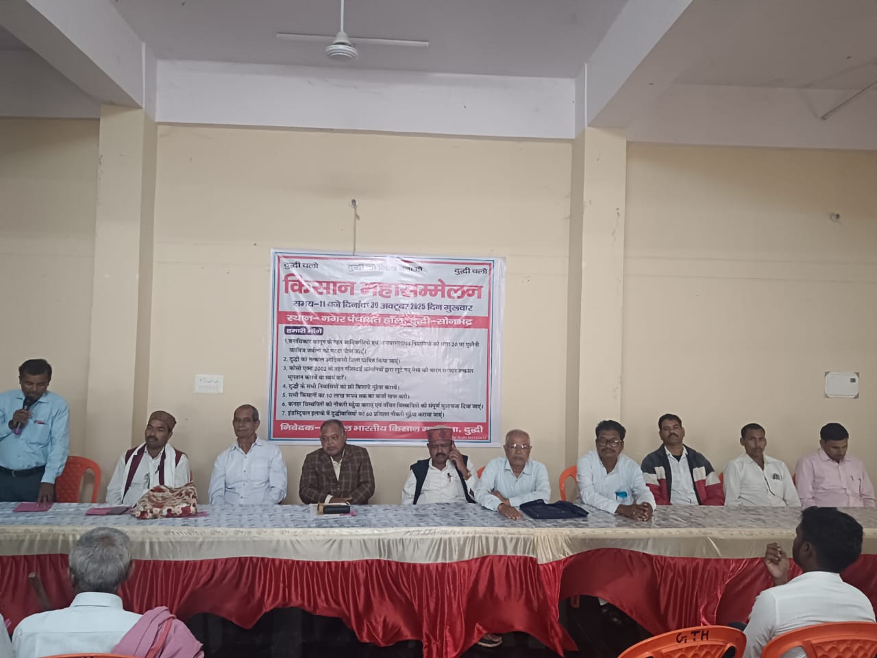 दुद्धी सोनभद्र नगर पंचायत कें बहुद्देशीय हाल में गुरुवार को किसान महासम्मेलन का आयोजन अखिल भारतीय किसान महासभा दुद्धी द्वारा आयोजन किया गया। सिविल बार एसोसिएशन के अध्यक्ष प्रभु सिंह एडवोकेट नें अपने उद्बोधन में कहाँ की दशकों से चली आ रही दुद्धी को जिला बनाओं की मांग लगातार जारी है जिसे मरते दम तक संघर्ष जारी रहेगा। कनहर बांध की तरह जिला बनाओ की मांग पूर्ण होगी। कनहर विस्थापितों को नौकरी एवं वंचित विस्थापितों को संपूर्ण मुआवजा प्रदान करने, विस्थापन पैकेज के नाम पर राजस्व कर्मी द्वारा भ्रष्टाचार की जाँच कें साथ साथ विभिन्न विभागों में बेतहाशा भ्रष्टाचार पर कोई लगाम नहीं लगाने आदि को लेकर सरकार की कड़ी निंदा कर कार्यवाही की मांग की।