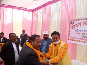 तत्पश्चात नोटरी अधिवक्ता रेनू देवी अग्रहरी के द्वारा मां सरस्वती की मधुर वंदना गीत प्रस्तुत किया गया, तदुपरांत एल्डर कमेटी के चेयरमैन अशोक कुमार ने नवनिर्वाचित पदाधिकारियों कैलाश कुमार गुप्ता एडवोकेट को अध्यक्ष पद की शपथ सर्वप्रथम दिलाई गई।