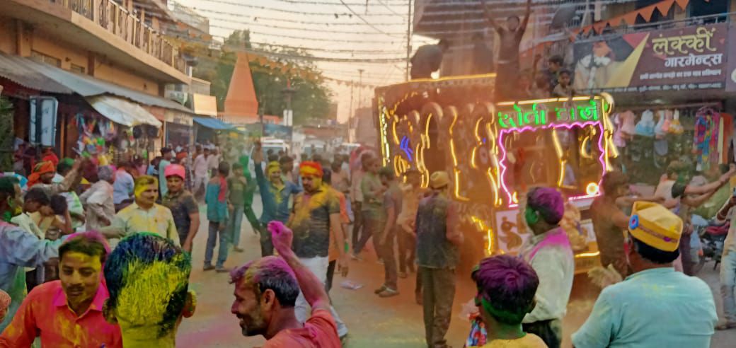 रास्ते में जगह-जगह व्यापारियों व राहगिरो को अबीर गुलाल लगाकर रंगों का पावन पर्व होली की शुभकामनाएं ज्ञापित करतें मस्ती भरे अंदाज में दर्जनों बारातियों की टोलीयां – होली के दिन खिल खिल जाते हैं रंगों में रंग मिल जाते हैं — गिले शिकवे भूल कर दोस्तों दुश्मन भी गले मिल जाते हैं! आदि हिन्दी फिल्मी गीतों की शानदार श्रृंखला के बीच जय हिंद क्लब के संरक्षक जवाहरलाल अग्रहरि, व सुमित सोनी, जय हिंद क्लब के पदाधिकारीगण रंजीत अग्रहरि,भोला उर्फ राजेंद्र प्रसाद सोनी, गोपाल अग्रहरि, रंजीत सोनी, धनंजय गुप्ता,संग गोरख अग्रहरि,अमरनाथ अग्रहरी, पवन सिंह,सतीश सोनी, निमेष कसेरा आदि दर्जनों टोलिया बारात में मस्ती करते नाचते गाते नगर भ्रमण किए | बारात भ्रमण से होली के रंग में रंगागया नगर दुद्धी का रीवा रांची मार्ग |