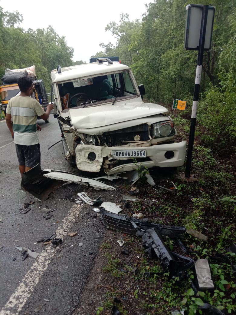दुद्धी, सोनभद्र | विकासखंड दुद्धी के ग्राम पंचायत रजखड़ घाटी के समीप बुधवार की सुबह एक दर्दनाक सड़क हादसे में कई लोग घायल हो गए। तेज गति से आ रही एक i20 कार और ब्लोरो वाहन की आमने-सामने टक्कर में दोनों वाहनों के परखच्चे उड़ गए। घटना इतनी जबरदस्त थी कि कुछ पल के लिए सड़क पर अफरा-तफरी मच गई और मार्ग पूरी तरह से बाधित हो गया।