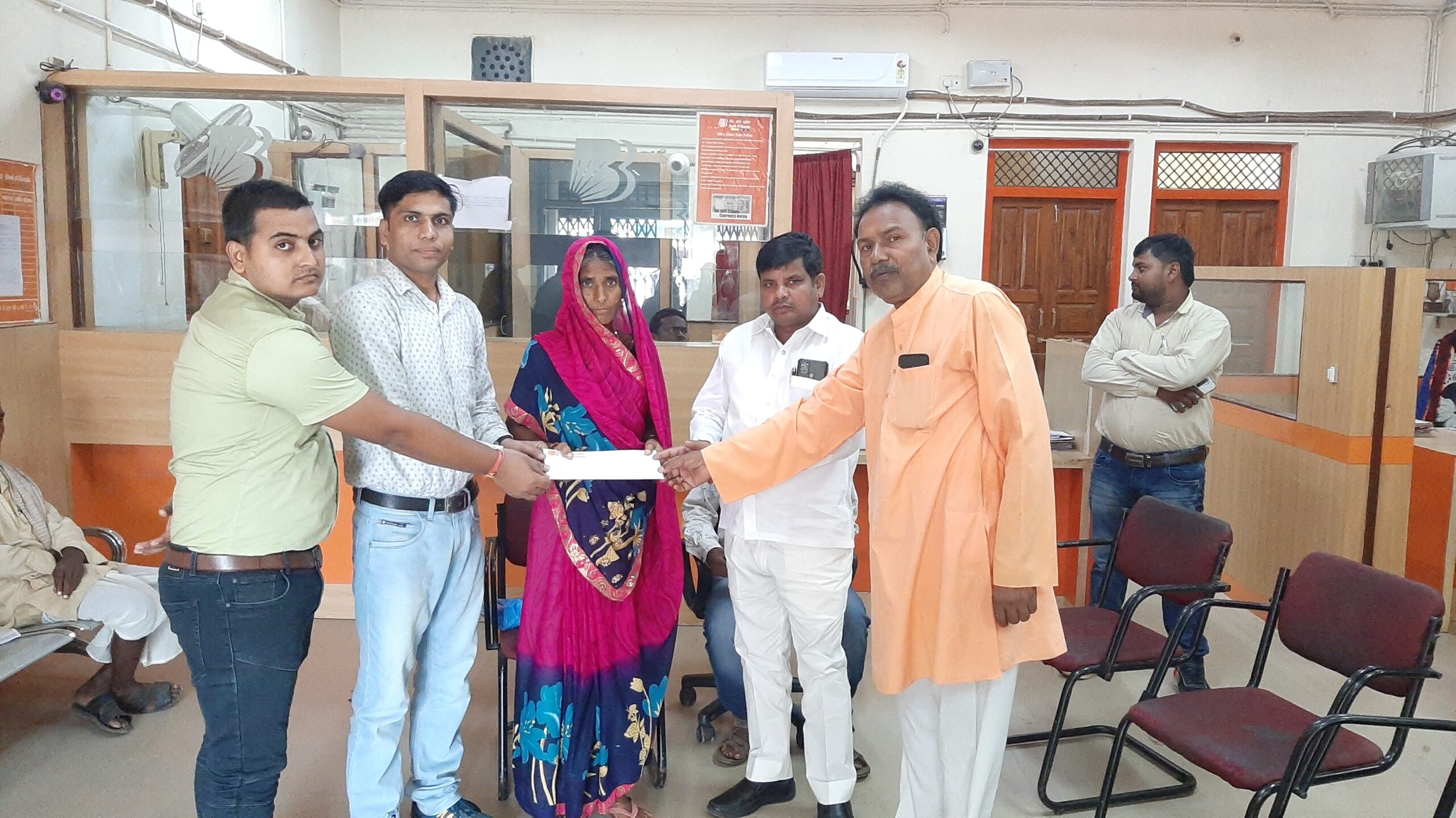 ब्रांच मैनेजर नितेश कुमार ने कहा कि हमारे शाखा में राधे कृष्ण व विमलेश कुमार खाता धारक थे दोनों का दुर्धटना होने के कारण मौत हो गयी थी बैंक ने दोनों खाता धारकों का बीमा किया था उनके मौत के बाद परिवार के मुखिया को दो-दो लाख का चेक दिया गया है कहा कि दोनों अत्यंत गरीब परिवार से है इस रुपये से दोनों परिवारों की आर्थिक स्तिथि में सुधार आयेगी उन्होंने बताया कि राधे कृष्ण के माता अनिता देवी निवासी पिपरहर पोस्ट इंजानी व विमलेश कुमार के पिता सुंदर लाल निवासी अरझत पोस्ट सेंदुर को दो दो लाख का चेक दिया गया है बताया कि दोनों खाता धारक ने 436 रुपये सालाना का बीमा कराया था जिसका लाभ उनके परिवार को मिला है।उन्होंने कहा कि किसी भी ग्राहक को कोई भी समस्या हो तो शाखा में आ कर या सेल फोन न. 9554959769 पे भी बात कर सकते है ग्राहक की हर संभव मदत की जाएगी इस मौके पर भाजपा नेता सोनाबच्चा अग्रहरी, उप शाखा प्रबंधक शंकर कुमार झा, कैशियर चंदन कुमार,राम मिलन,राजू अग्रहरी ,रफीक अहमद,सफदर अब्बास,अहमद राजा, मुर्शीद अहमद,आशीष गुप्ता,मनोज गुप्ता, सहित समस्त लोग उपस्थित रहे।