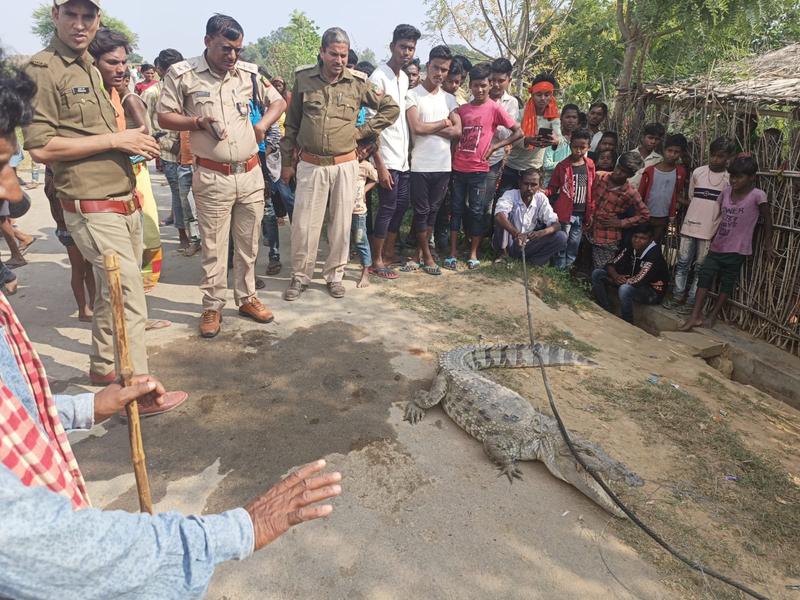 वहीं स्थानीयो ने इसकी सूचना वन विभाग को दी गई जिसके उपरांत मंगल वार के सुबह ही वन विभाग की टीम मौके पर पहुंच गई और घंटों रेस्क्यू ऑपरेशन के बाद मगरमच्छ को पकड़ लिया गया और कोटा बंधी में छोड़ दिया गया जहां स्थित समान्य है।