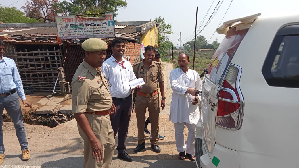 दुद्धी सोनभद्र। नगर पंचायत चुनाव केसर गर्मी को देखते हुए नगर के विभिन्न क्षेत्रों में नियुक्त मजिस्ट्रेट और पुलिस के अधिकारी नगर पंचायत अध्यक्ष के एक प्रत्याशी के वाहन चेकिंग करते हुए। सहायक मजिस्ट्रेट सर्वेश कुमार सिंह ने बताया कि किसी भी वाहन को चेकिंग किया जा रहा है कि वाहन में पैसा या अन्य बांटने वाला सामग्री तो नहीं प्रत्याशियों के द्वारा दिया जा रहा है। उन्होंने कहा कि किसी भी मतदाताओं को कोई भी प्रत्याशी किसी प्रकार का कोई प्रलोभन आदि देता है और डराता धमकाता है तो ऐसे लोगों को चिन्हित करते हुए कार्यवाही की जाएगी। वाहन चेकिंग के दौरान प्रत्याशी के पास से कुछ नहीं मिला।