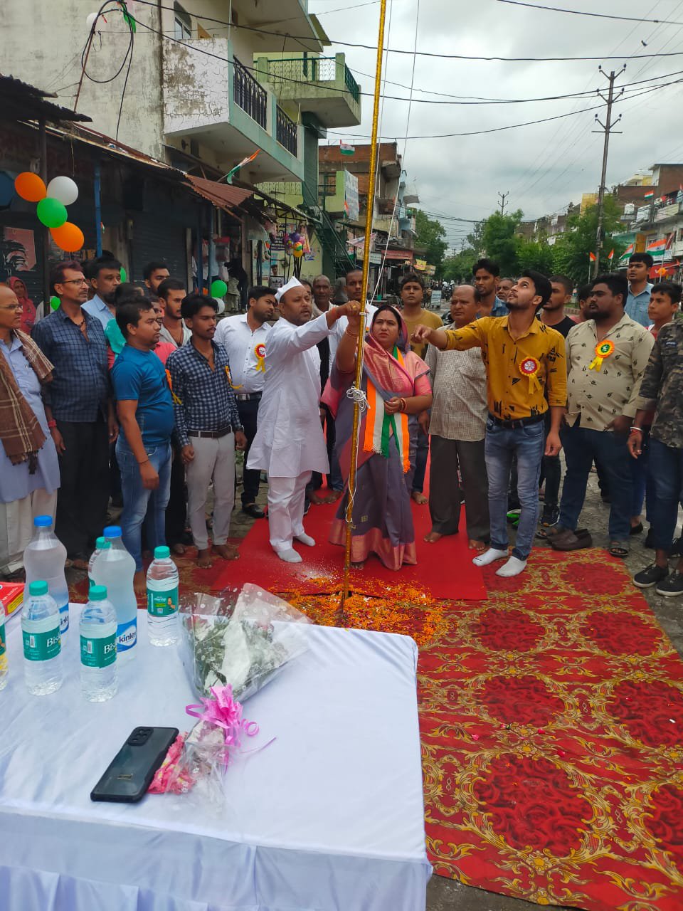 कार्यक्रम में मुख्य अतिथि के रूप में आमंत्रित पूर्व पार्षद श्रीमती विनीता कुशवाहा ने ध्वज फहराकर तिरंगे को सलामी दी!! उपस्थित व्यापारियों,वार्ड वासियों तथा नव युवकों को संबोधित करते हुए कहा आज हम आजादी का महोत्सव 75 वर्ष पूर्ण होने पर मना रहे हैं ,यह शुभ अवसर हमे अनेक क्रांतिकारियों के बलिदान से मिला है,हमे इसे सुरक्षित रखना होगा! हमे एकता ,भाई चारा , जाति धर्म भाषा।से ऊपर उठकर राष्ट्रीय विकास हेतु कटिबद्ध होना होगा!!