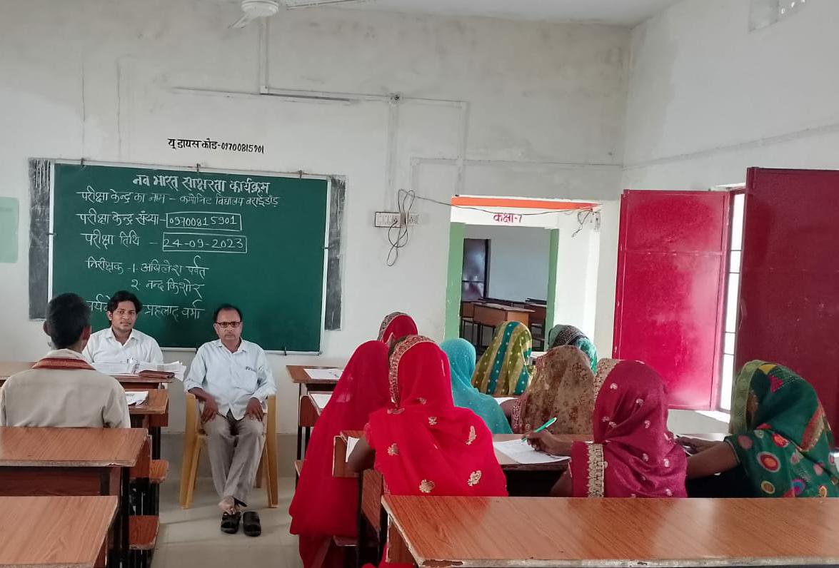 बीजपुर(विनोद गुप्त): केंद्र एवं प्रदेश सरकार के नवभारत साक्षरता मिशन कार्यक्रम के अंतर्गत रविवार को बीजपुर क्षेत्र के एक दर्जन परीक्षा केंद्रों पर आयोजित परीक्षा में सैकड़ो निरक्षर महिलाओं एवं पुरुषों द्वारा भाग लिया गया। अशिक्षित लोगों को शिक्षित करने के उद्देश्य से सरकार द्वारा चलाए जा रहे इस कार्यक्रम को सफल बनाने की तैयारी बेसिक शिक्षा विभाग द्वारा विगत एक सप्ताह से युद्ध स्तर पर किया जा रहा था।