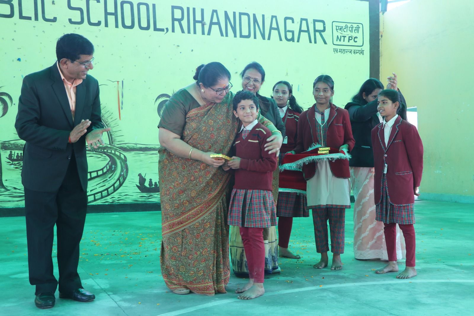 सर्वप्रथम एन सी सी कैडेट्स ने मुख्य अतिथि एवं विशिष्ट अतिथि को सलामी देते हुए आगवानी की। तत्पश्चात विद्यालय के प्राचार्य राजकुमार ने बच्चों के स्काउट ताली के बीच पुष्पगुच्छ भेंट कर पंकज मेंदीरत्ता एवं श्रीमती अनीता मेंदीरत्ता का स्वागत किया। हवन के बाद सभागार में बैठे विद्यार्थियों के ऊपर फूलों की पंखुड़ियां डाल कर परियोजना प्रमुख ने आशीर्वाद दिया। तत्पश्चात कक्षा- छठी और सातवीं की छात्राओं ने विशेष रूप से तन्वी, दृष्टि, खुशी, अंजलि, कृतिका , कक्षा प्रथम की छात्रा अनन्या पांडे, कशिश, कशफ आदि ने नृत्य के द्वारा सभी का मन मोह लिया। इसके बाद वर्तिका महिला मंडल की अध्यक्षा श्रीमती अनीता मेंदीरत्ता ने जेईई-मेन में सफलता हासिल कर विद्यालय एवं क्षेत्र का नाम रोशन करने वाले छात्रों अंकित कुमार 98 परसेंटाइल, हर्ष यादव 97 परसेंटाइल, अख्तर रजा 92 परसेंटाइल, अविनाश मौर्या 89 परसेंटाइल, सौरभ कुमार 86 परसेंटाइल को पुरस्कृत कर सम्मानित किया। उन्होंने सभी सफल विद्यार्थियों को आई आई टी एडवांस में सफलता हासिल करने के लिए हौसला अफजाई करते हुए आशीर्वाद दिया। इस अवसर पर सौ प्रतिशत वार्षिक उपस्थिति वाले छात्रों नीरज, रूही,आयुषी, खुशी , कामरान खान को भी पुरस्कृत कर सम्मानित किया गया। अंत में जेम गर्ल्स और आश्रम से जुड़े बच्चों ने भी मैडम से आशीर्वाद प्राप्त किया। श्रीमती अनीता मेंदीरत्ता ने अपने संबोधन में कहा कि नैतिक मूल्यों के बिना शिक्षा पूरी नहीं हो सकती। डीएवी पब्लिक स्कूल के बच्चों के अनुशासन की सराहना करते हुए उन्होंने कहा कि अनुशासन हीं मनुष्य को महान बनाता है। इसलिए हमें जीवन के हर क्षेत्र में अनुशासन को अपनाना चाहिए ।