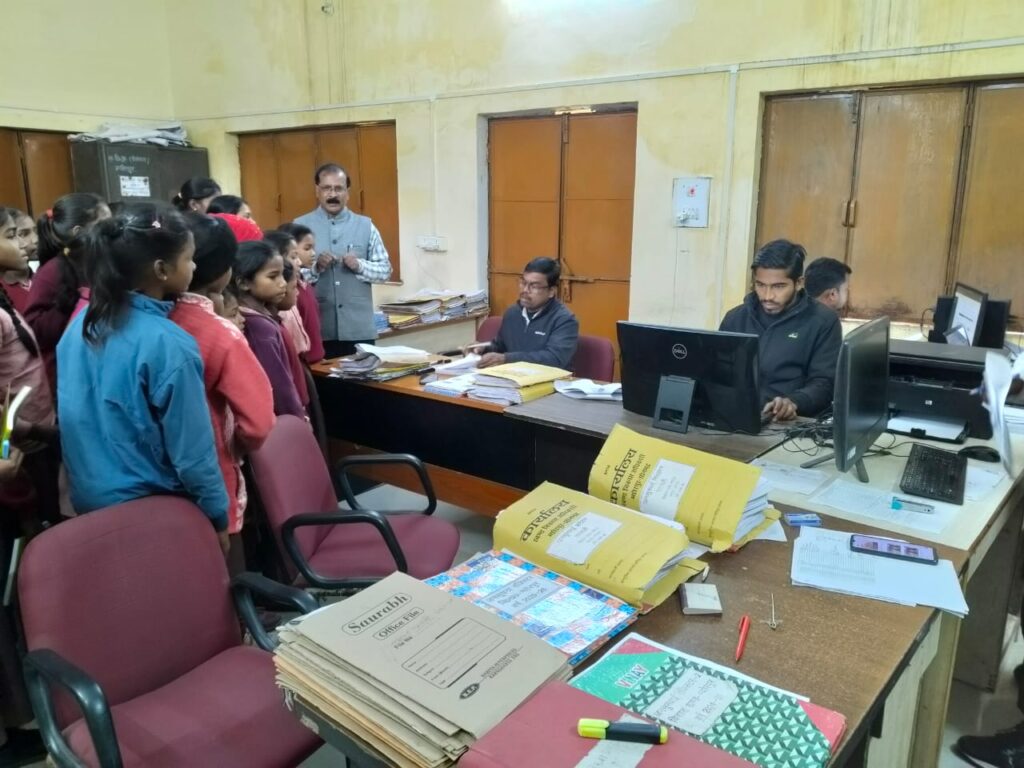 ब्लॉक प्रमुख द्वारा बच्चों को जाति प्रमाण पत्र, आय प्रमाण पत्र एवं निवास प्रमाण पत्र से संबंधित आवेदन प्रक्रिया की जानकारी दी गई। साथ ही वास्तविक आवेदन पत्र दिखाकर प्रशासनिक प्रक्रिया को व्यवहारिक रूप से समझाया गया।