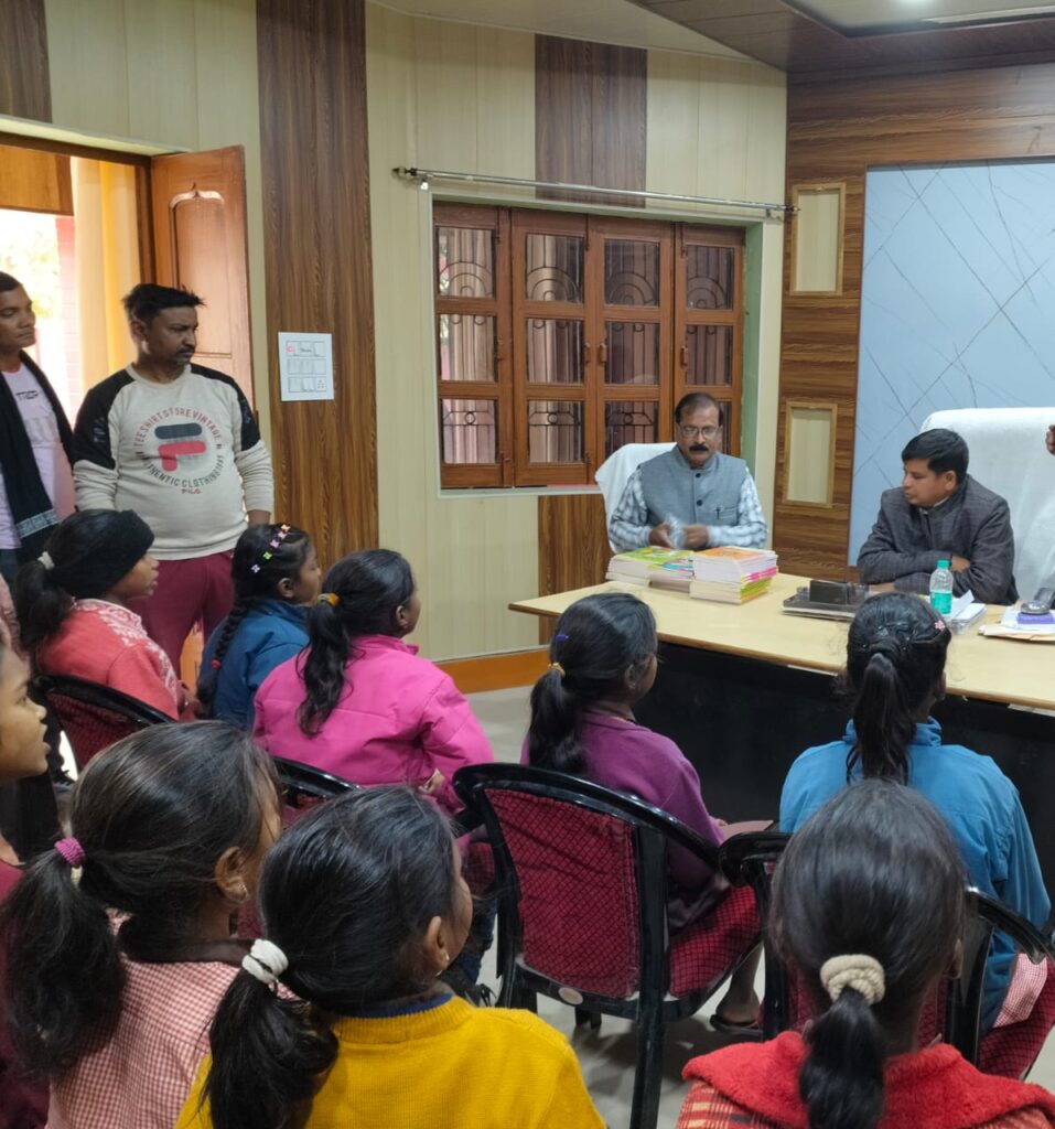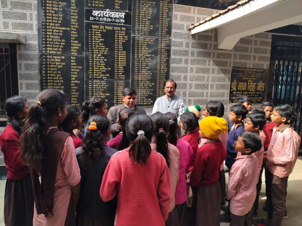 ब्लॉक प्रमुख मान सिंह गोंड द्वारा बच्चों का उत्साहवर्धन करते हुए उन्हें पेन एवं कॉपी वितरित की गई, जिससे विद्यार्थियों में विशेष उत्साह देखने को मिला। बच्चों ने भी जिज्ञासावश प्रश्न पूछे और प्रशासनिक कार्यों को जानने-समझने में गहरी रुचि दिखाई।