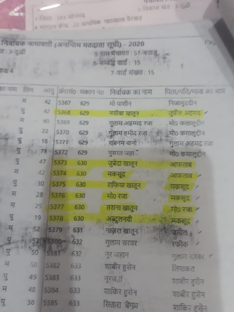 पंचायत निर्वाचक नामावली में एक व्यक्ति का नाम दो-दो, तीन-तीन ग्राम पंचायतों में, बीएलओ की भूमिका संदिग्ध।