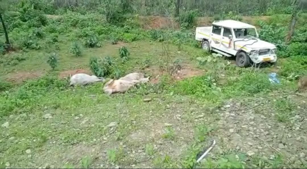 प्राप्त जानकारी के अनुसार तेज रफ्तार में डाला के तरफ से आ रही पिकअप के आगे एकाएक गाय आ गई जिसके कारण पीकअप अनियंत्रित होकर गायों को मारते व एक लगभग चार वर्ष के मासूम को भी चपेट में लेते हुए रोड से लगभग तीस मीटर खाई में चली गई। जिसमें पाँच गाय व बैल की मौके पर ही तत्काल मौत हो गई और दो महिला व मासूम बालक सहित पाँच लोग घायल हो गए।