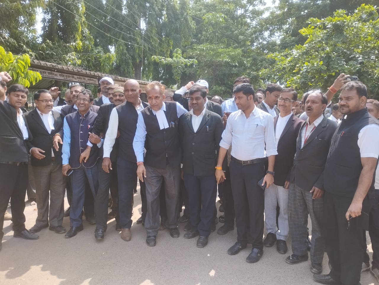 पुलिस का कृत्य घोर निंदनीय: राकेश शरण, आक्रोशित अधिवक्ताओं ने चक्रमण कर किया प्रदर्शन।