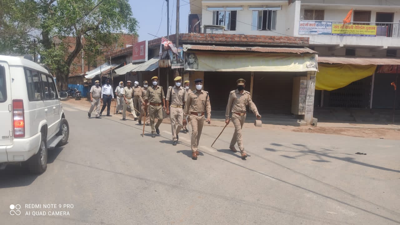 दुद्धी,सोनभद्र-दुद्धी मे आज पुलिस क्षेत्राधिकारी दुद्धी रामाशीष यादव के नेतृत्व में नगर में रूट मार्च कर वैश्विक महामारी करोना के शासन द्वारा निर्देशित गाइडलाइन का पालन कराने, एवं जान है तो जहान है का पाठ प्रभारी निरीक्षक कोतवाली दुद्धी पंकज कुमार सिंह ने नगर भ्रमण के दौरान आम जनों को जागृत किया।