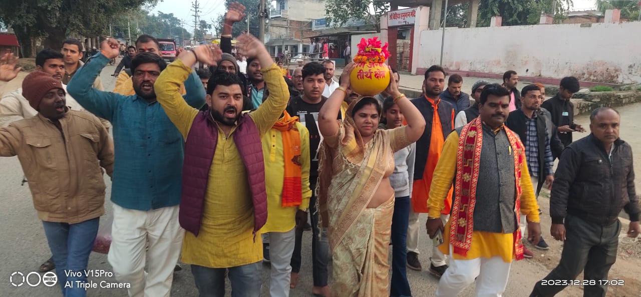 माताएं-बहने शामिल हुई। सुरक्षा व्यवस्था के मद्देनजर प्रभारी निरीक्षक पंकज पांडेय मय फोर्स कलश यात्रा के साथ चलते रहे।