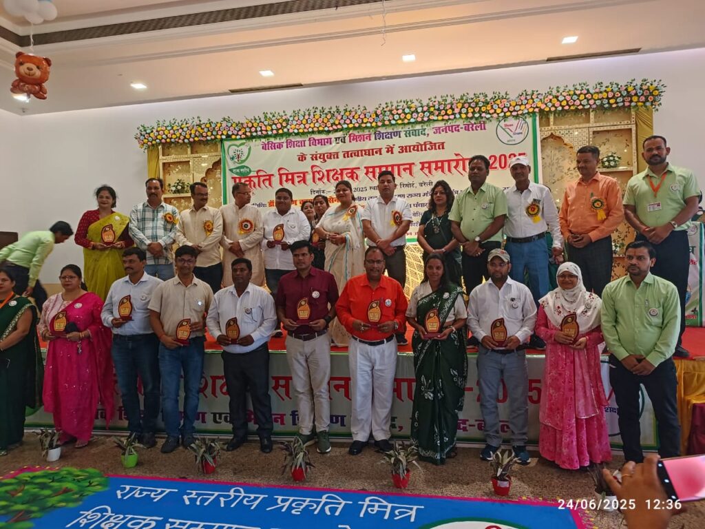 दुद्धी सोनभद्र कंपोजिट विद्यालय दिघुल के सहायक अध्यापक रामरक्षा कों बेसिक शिक्षा विभाग एवं मिशन शिक्षण संवाद जनपद बरेली द्वारा कुंवर रिसोर्ट बरेली में आयोजित राज्यस्तरीय ” प्राकृति मित्र शिक्षक सम्मान समारोह 2025 ” का आयोजन में सहायक अध्यापक कों स्मृति चिन्ह एवं प्रशस्ति पत्र देकर कार्यक्रम के मुख्य अतिथि डॉक्टर अरुण कुमार सक्सेना वन पर्यावरण राज्य मंत्री स्वतंत्र प्रभार उत्तर प्रदेश सरकार व विशिष्ट अतिथि रश्मि पटेल जिला पंचायत अध्यक्ष बरेली के कर कमलों द्वारा सम्मानित किया गया। उक्त आयोजित कार्यशाला में उत्तर प्रदेश के 83 जबकि उत्तराखंड के 14 अध्यापकों को सम्मानित किया गया।
