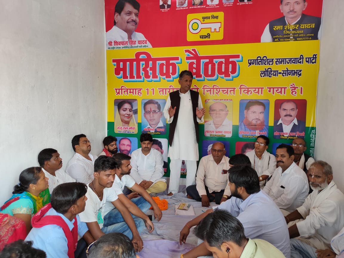 सोनभद्र जनपद में प्रगतिशील समाजवादी पार्टी(लोहिया) की मासिक बैठक बुड़हर कला स्थित जिला कार्यालय पर पार्टी के जिलाध्यक्ष रमाशंकर यादव के नेतृत्व में सम्पन्न हुई।