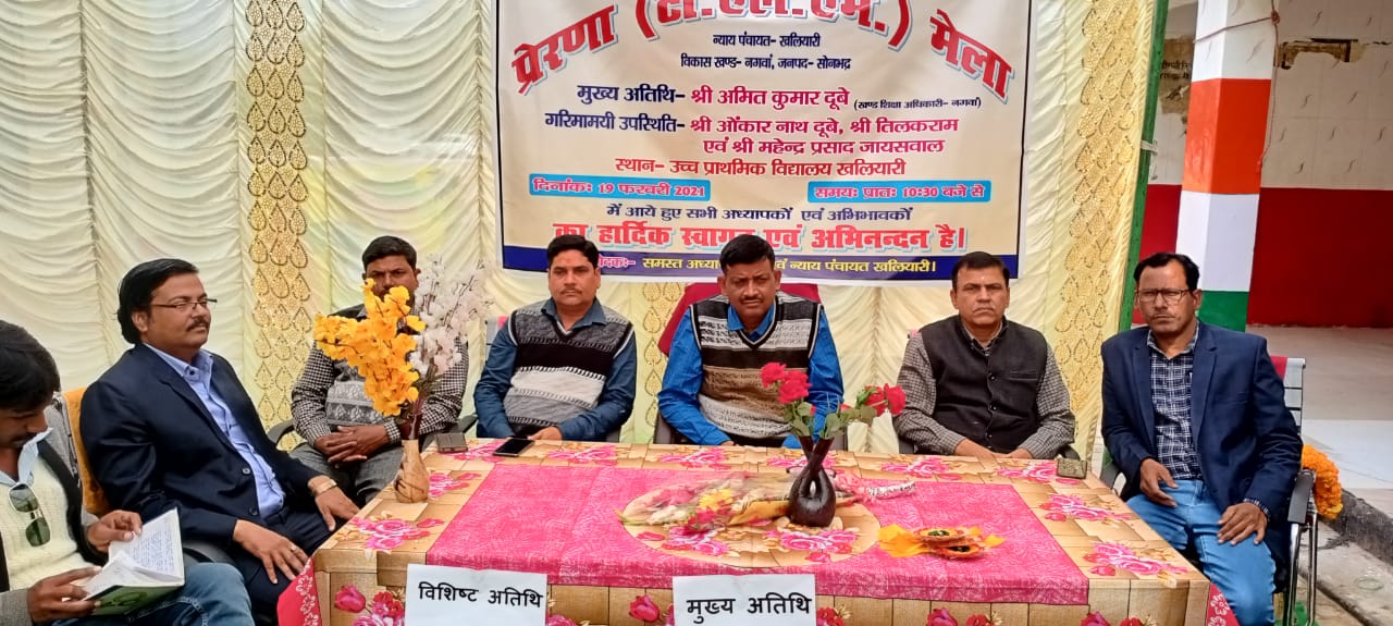 शिक्षण सहायक सामाग्री के न्याय पंचायत स्तरीय मेला का आयोजन सुरेन्द्र कुमार जायसवाल 17.02.2021 प्रधानाचार्य उच्च प्राथमिक विद्यालय खलियारी ने किया कार्यक्रम में जितेन्द्र पासवान ग्राम प्रधान खलियारी रमेश चन्द्र पाण्डेय क्षेत्र पंचायत सदस्य खलियारी और शिक्षक बंधु अरूणेश पाण्डेय आनंद देव केशव उमाशंकर विश्वकर्मा संतोष पाण्डेय सीता कुमारी रामसरीखा यादव उपस्थित रहे ।