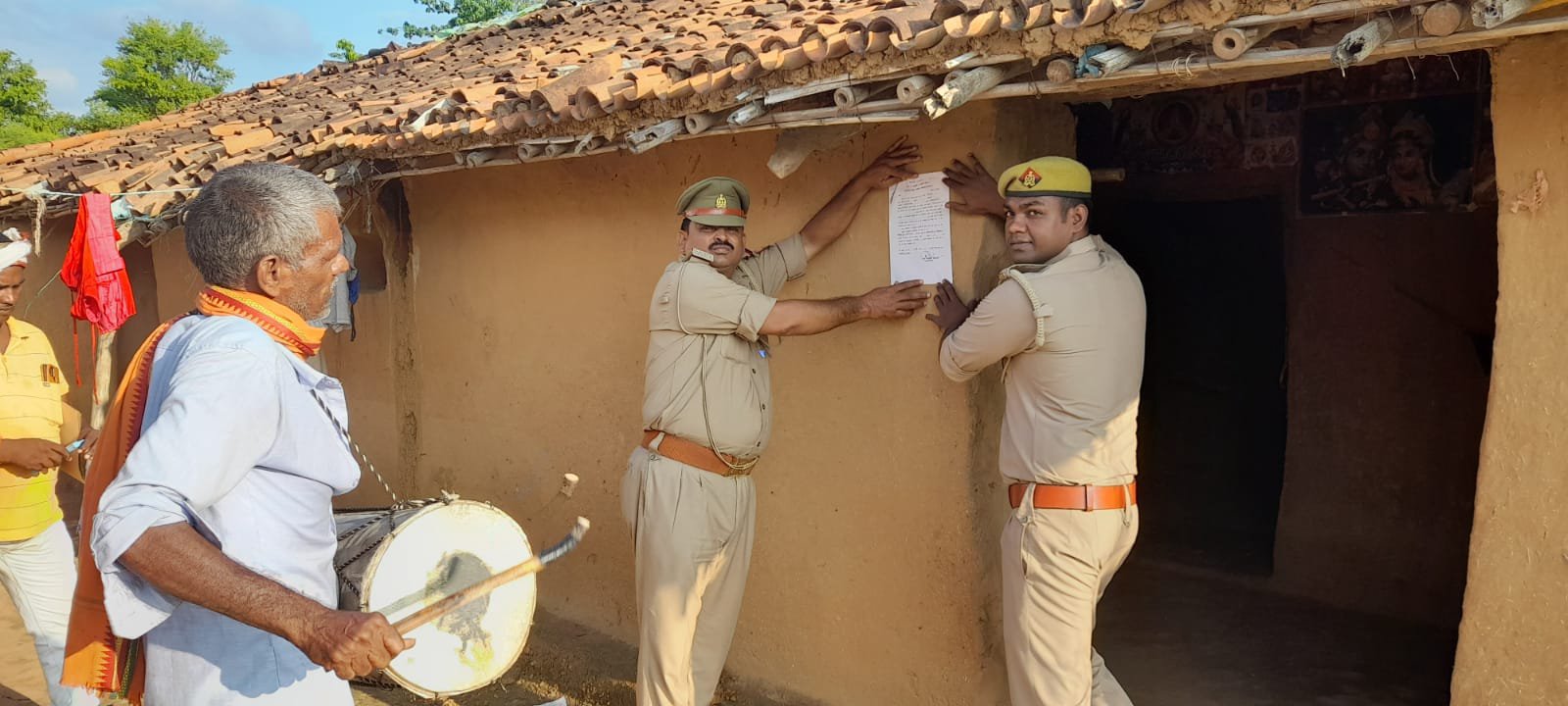 विंढमगंज सोनभद्र थाना क्षेत्र के अंतर्गत ग्राम पंचायत सलैयाडीह निवासी दीपक कुमार पुत्र लालाराम जिसके ऊपर धारा 498 ए, 304 बी व तीन/ चार डीपी एक्ट के तहत मुकदमा पंजीकृत था न्यायालय में हाजिर नहीं होने के वजह से थाना प्रभारी निरीक्षक सूर्यभान के द्वारा उप निरीक्षक सुरेंद्र सिंह के नेतृत्व में मुनादी कराकर उक्त फरार आरोपी के घरों पर नोटिस चस्पा कराई गई।