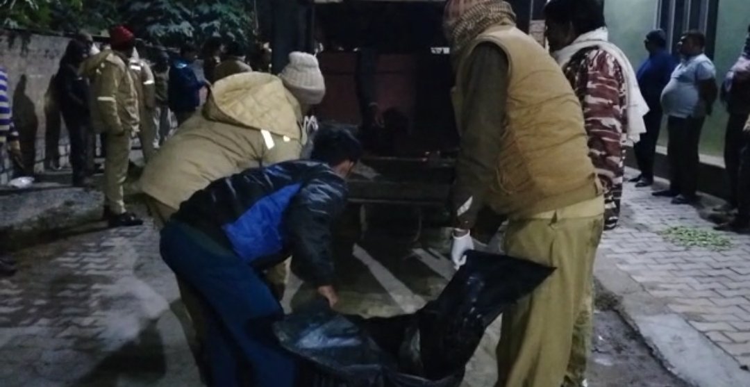 आग बुझने के बाद बन्द मकान में एक अज्ञात युवक की जली हुई लाश दिखी।