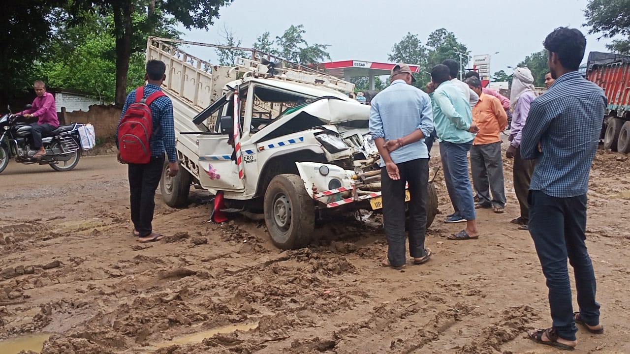 बताया जा रहा कि सड़क खराब होने के कारण ट्रक दाहिने से होकर जा रहा था कि सामने से आ रही पिकअप के ऊपर चढ़ गयी। घटना स्थल से ट्रक चालक व परिचालक फरार हो गये। पिकअप मे सवार 24 वर्षीय शिवदाश पुत्र जगदीश व 12 वर्षीय अखिलेश 12 पुत्र शिवनारायण निवासी गण बभनी घायल हो गये। आस पास के ग्रामीणों ने पुलिस को सुचना दी। सूचना पर पहुंचे उपनिरिक्षक देवेन्द्र प्रताप सिंह ने पिकअप मे फंसे घायलो को परिजन के साथ उपचार के लिए म्योरपुर भेजा गया ।
