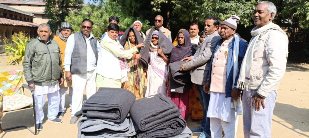 ब्लॉक प्रमुख ने गोविंदपुर में निर्धनों को वितरित किए कंबल
