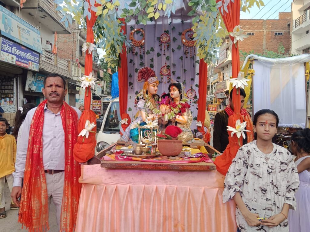 भगवान श्रीकृष्ण का जन्म शनिवार को रात्रि 12:00 बजें होने के उपरांत एक दिन डोल अर्थात भगवान के मूर्ति की झांकी कों मंदिरो व अपने घर पर भजन कीर्तन पूजन उपरान्त सोमवार को तीसरे दिन झांकी नगर भ्रमण की परंपरा के तहत श्रीरामलीला मैदान से डोल दर्जनों की संख्या में प्रमुख मार्गो से होकर भगवान श्रीकृष्ण की झांकी पत्ता कंपनी गोदाम से घर-घर आरती की अनोखी आस्था की परंपरा में घर परिवार बच्चे सभी पूजन में हिस्सा लेते हुए अपना जीवन मानो कृतार्थ कर रहे थे ।