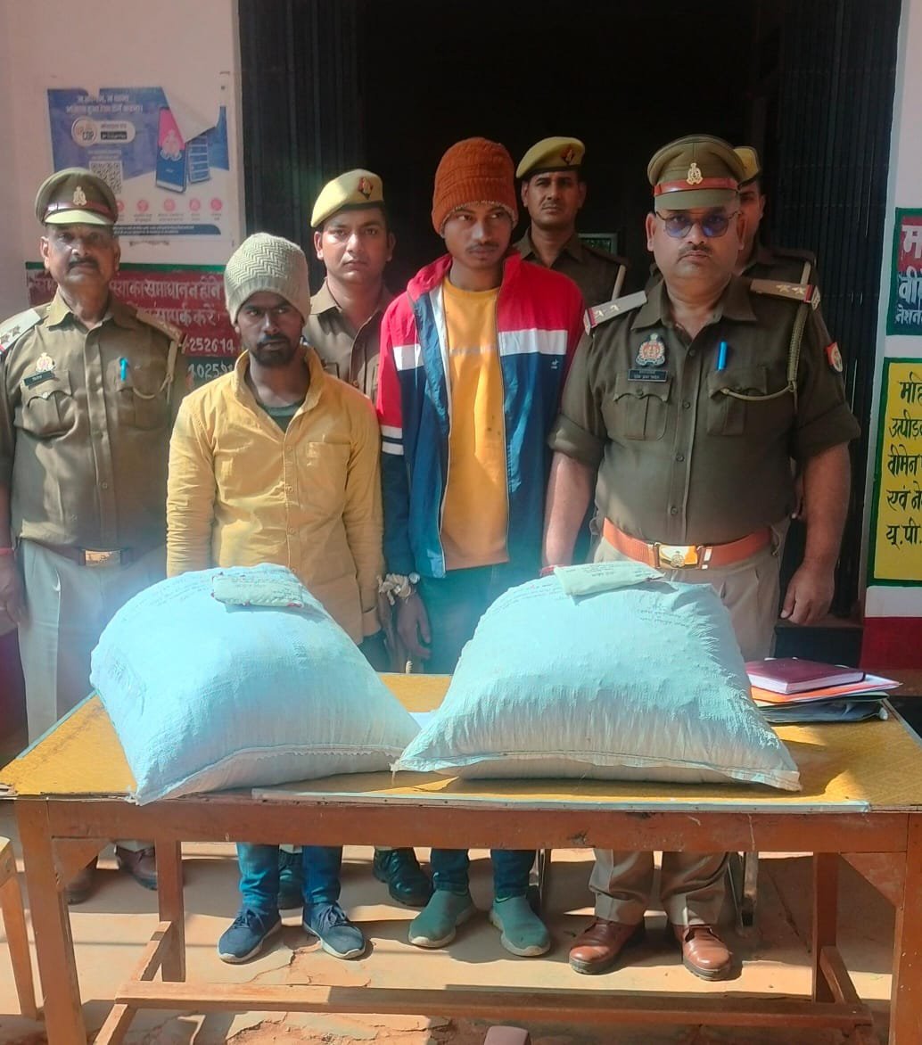 पुलिस अधीक्षक सोनभद्र डॉ0 यशवीर सिंह द्वारा अपराध एवं अपराधियों के विरुद्ध जनपद में चलाए जा रहे लगातार अभियान के क्रम में अपर पुलिस अधीक्षक आपरेशन व क्षेत्राधिकारी सदर के निर्देशन में गठित टीम द्बारा थाना अध्यक्ष रायपुर बृजेश कुमार पांडेय हेड कांस्टेबल सुरेश प्रसाद विपिन यादव अजय कुशवाहा ने बस स्टैंड खलियारी पोखरा के पास से 7.11.2023 को समय 20.15 बजे अजय पासवान पिता दिनेश पासवान उम्र 22 वर्ष निवासी अमेठी खुर्द कबिलास पुर थाना थावे जिला गोपालगंज बिहार के पास से एक सफेद प्लास्टिक के बोरी में 14 किलो व कुन्दन बैठा पिता सुभाष बैठा उम्र 25 वर्ष निवासी अमेठी खुर्द कबिलास पुर थाना थावे जिला गोपालगंज बिहार के पास से एक सफेद प्लास्टिक के बोरी में 13.700 ग्राम नाजायज गांजा बरामद हुआ टोटल 27.700 बारामदी के आधार पर स्थानीय थाना रायपुर पर मुकदमा अपराध संख्या 99 / 2023 धारा 8/20 एनडीपीएस एक्ट पंजीकृत कर अभियुक्त गण उपरोक्त को माननीय न्यायालय भेजा गया गिरफ्तार करने वाली पुलिस टीम थाना अध्यक्ष बृजेश कुमार पांडेय, सुरेश प्रसाद हेड कांस्टेबल विपिन यादव, अजय यादव मौजूद रहे।