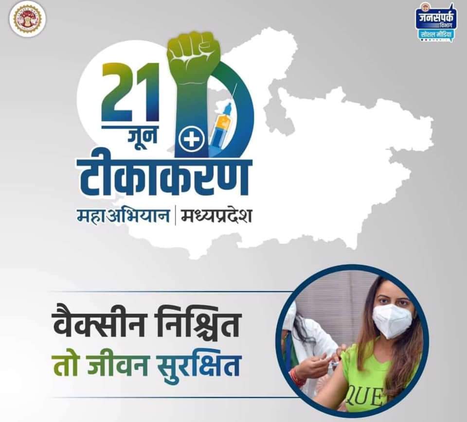 सिंगरौली-मध्य प्रदेश शासन के मंशानुसार जनपद सिंगरौली में भी 21 जून को जिले भर में महा अभियान चलाया जा रहा है , प्रशासन स्तर पर इसे महोत्सव का रूप दिया जा रहा है टीका करण के लिए आए लोगों को हर तरह की सुविधा उपलब्ध कराई जा रही है लोग चाहें तो अपने वाहन में ही बैठकर वैक्सीन लगवा सकते है।
