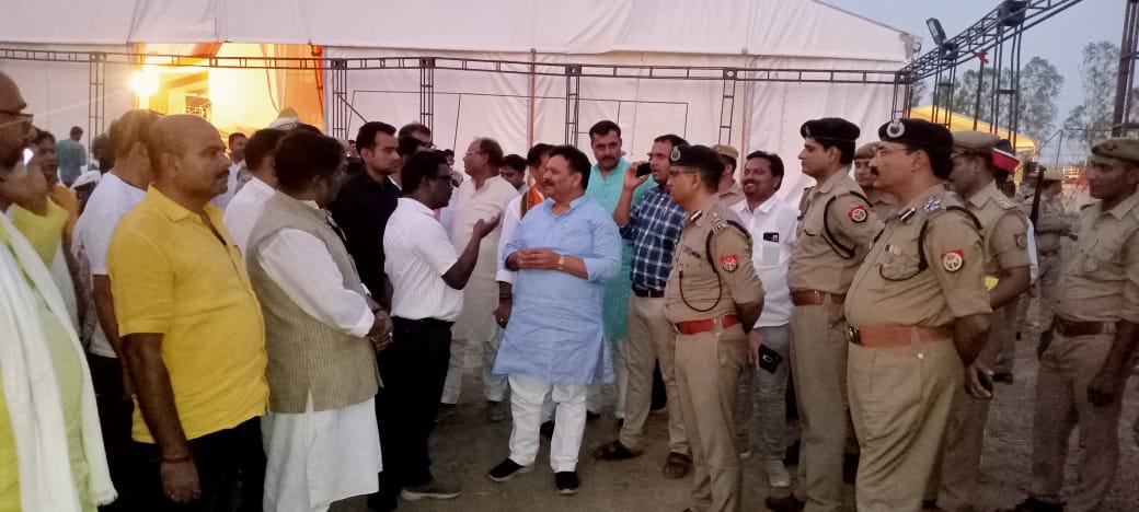 जनप्रतिनिधिगण व अपर पुलिस महानिदेशक वाराणसी जोन, वाराणसी राम कुमार, मण्डलायुक्त मीरजापुर डॉ0 मुथु कुमार स्वामी बी, पुलिस उप महानिरीक्षक विन्ध्याचल परिक्षेत्र राकेश प्रकाश सिंह द्वारा जिलाधिकारी सोनभद्र चन्द्र विजय सिंह व पुलिस अधीक्षक सोनभद्र डॉ0 यशवीर सिंह की उपस्थिति में मुख्यमंत्री (उ.प्र.) के आगमन/भ्रमण कार्यक्रम को सकुशल सम्पन्न कराये जाने के दृष्टिगत कार्यक्रम स्थल व हेलीपैड का निरीक्षण किया गया व सुरक्षा व्यवस्था का जायजा लिया गया एवं सम्बन्धित को आवश्यक दिशा निर्देश दिए गये ।