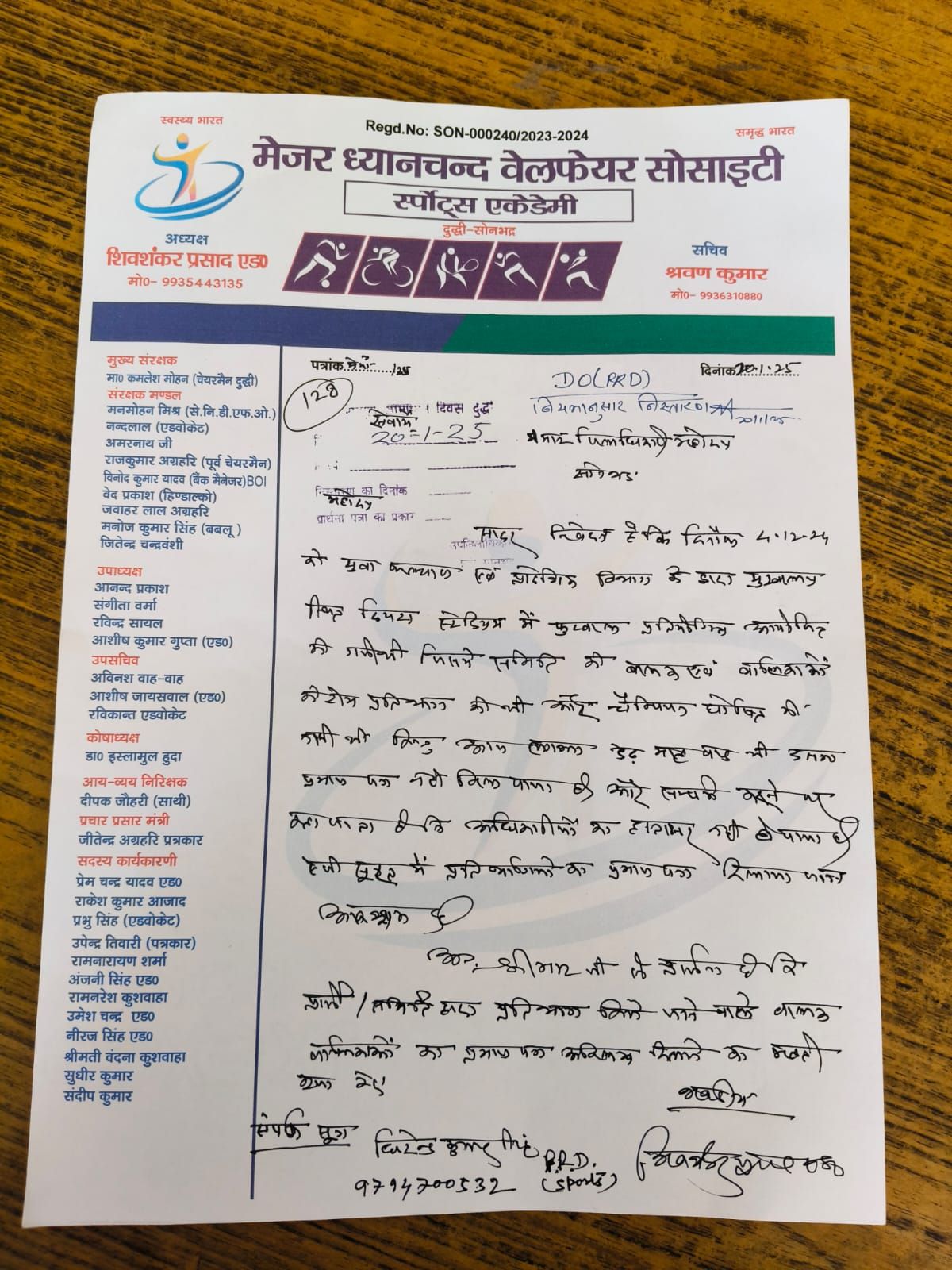 प्रार्थना पत्र में बताया गया कि यह प्रतियोगिता तियरा स्टेडियम, सोनभद्र में आयोजित हुई थी, जिसमें दुद्धी की बालक एवं बालिका टीम ने चैंपियनशिप जीती थी। खिलाड़ियों ने कई बार खेल अधिकारियों से प्रमाण पत्र के संबंध में संपर्क किया, लेकिन उन्हें केवल बहानेबाजी और टालमटोल का सामना करना पड़ा।