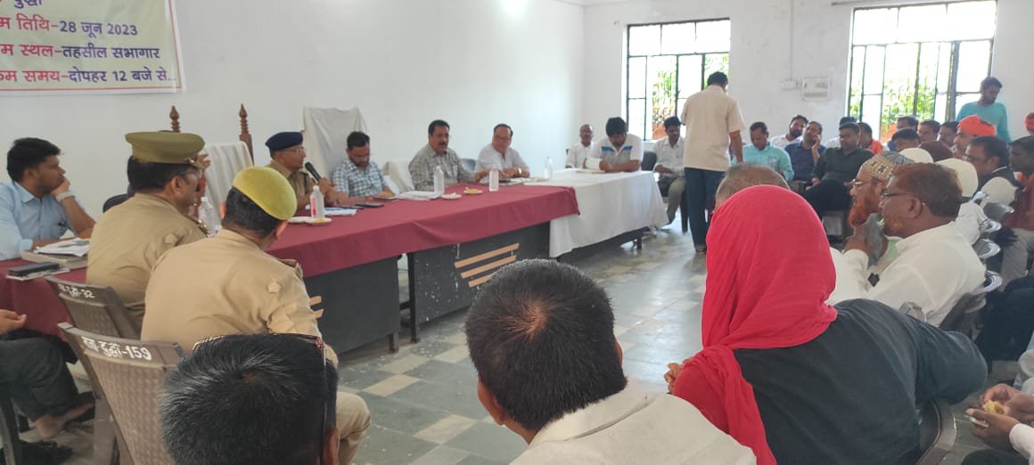 शासन के दिए गए दिशा निर्देश के अनुरूप है त्यौहार मनाए यदि कोई समस्या हो या किसी व्यक्ति द्वारा विघ्न डाली जाती है तो इसकी सूचना स्थानीय प्रशासन को अवगत कराएं, साथ ही साथ लिखित रूप से देख कर अवगत कराएं और उसका समाधान भी यदि आप सभी के द्वारा सोचा गया हो तो उसे भी बताए जिससे प्रशासन उस पर अमल कर आवश्यक कार्रवाई कर सके ,वहीं एडिशनल एसपी ने कहा कि आप सब त्यौहार शांतिपूर्ण भाई चारे के साथ मनाएं त्यौहार में कोई भी खलल नहीं डालेगा और ना ही कोई नई परंपरा की शुरुआत होगी कोई भी व्यक्ति ऐसा कार्य ना करें जिससे कि आपसी सौहार्द बिगड़े और कानून व्यवस्था में व्यवधान उत्पन्न हो| आप सभी मिलजुल कर पूर्व की भांति इस वर्ष भी त्यौहार को मनाएं| इस मौके पर एसडीएम सुरेश राय ,तहसीलदार बृजेश वर्मा ,नगर अध्यक्ष कमलेश मोहन, नायब तहसीलदार विशाल पासवान, अधिशासी अधिकारी दुद्धी रामसमुख , थानाध्यक्ष दुद्धी नागेश सिंह, उपनिरीक्षक संजय सिंह ,ओमप्रकाश सिंह ,महिला थानाध्यक्ष सविता सरोज , जामा मस्जिद सदर रसूल बक्श उर्फ़ कल्लन खान ,तालिब अली ,अखाड़ा कमेटी सदर बनारसी शाह, अजमत उल्लाह, सलीम,