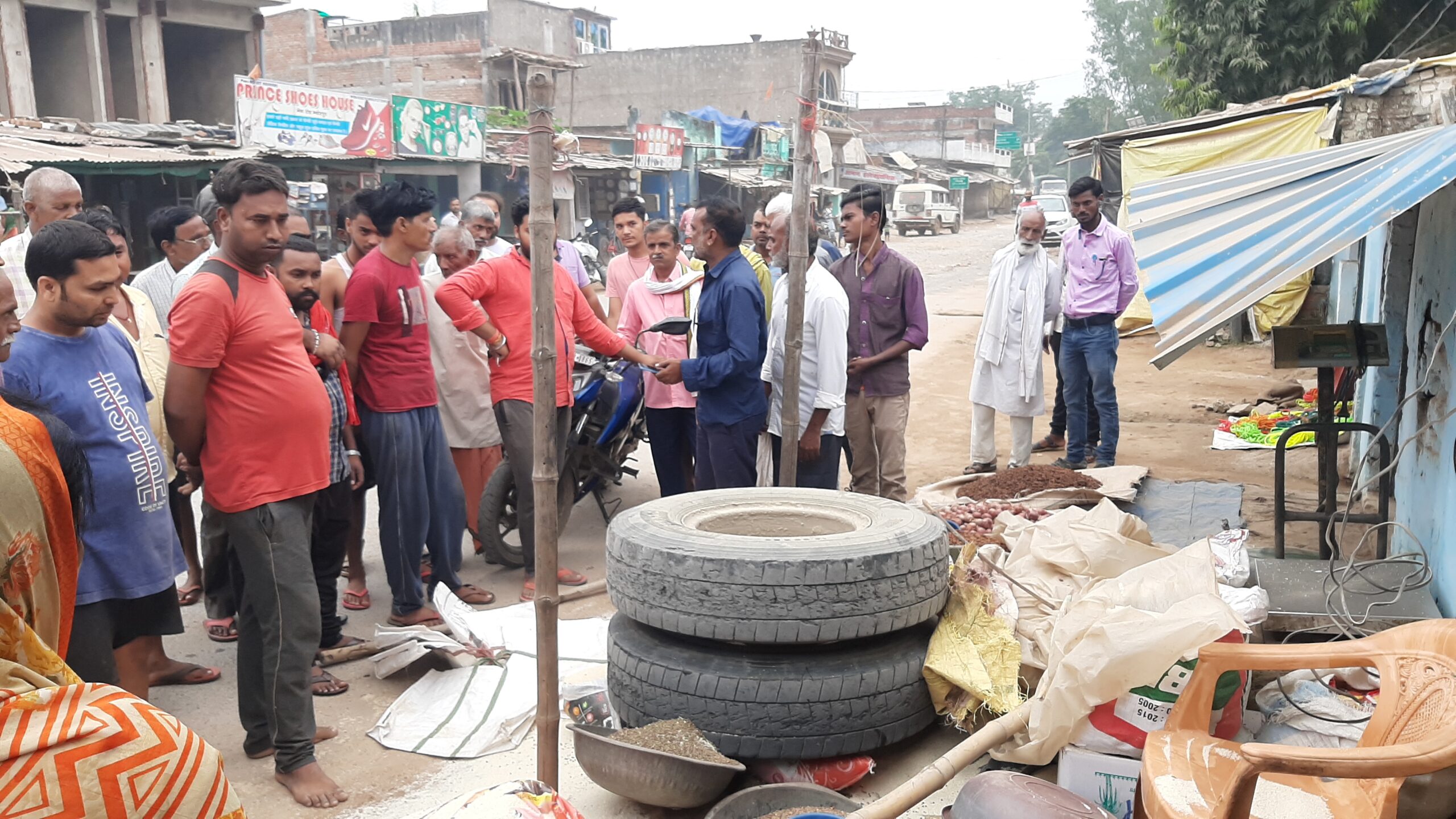म्योरपुर स्थानीय कस्बा में सोमवार को एक बड़ा हादसा टल गया प्राप्त जानकारी के अनुसार रोड़ के किनारे चावल,गेंहू,सरसो,दाल आदि का दुकान लगाया जा रहा था इसी दौरान रेनुकूट की ओर से बभनी जा रही एक ट्रेलर का दोनों बडा चक्का निकल कर दुकानदार गौरव केशरी के दुकान में घुस गया जिससे चावल,गेंहू,सरसो,दाल एक मे मिल गया दुकान स्वामी द्वारा मोटरसाइकिल से पीछा कर ड्रावर को जानकारी दिया गया देखते ही देखते मौके पर ग्रामीणों की भीड़ इकट्ठा हो गयी