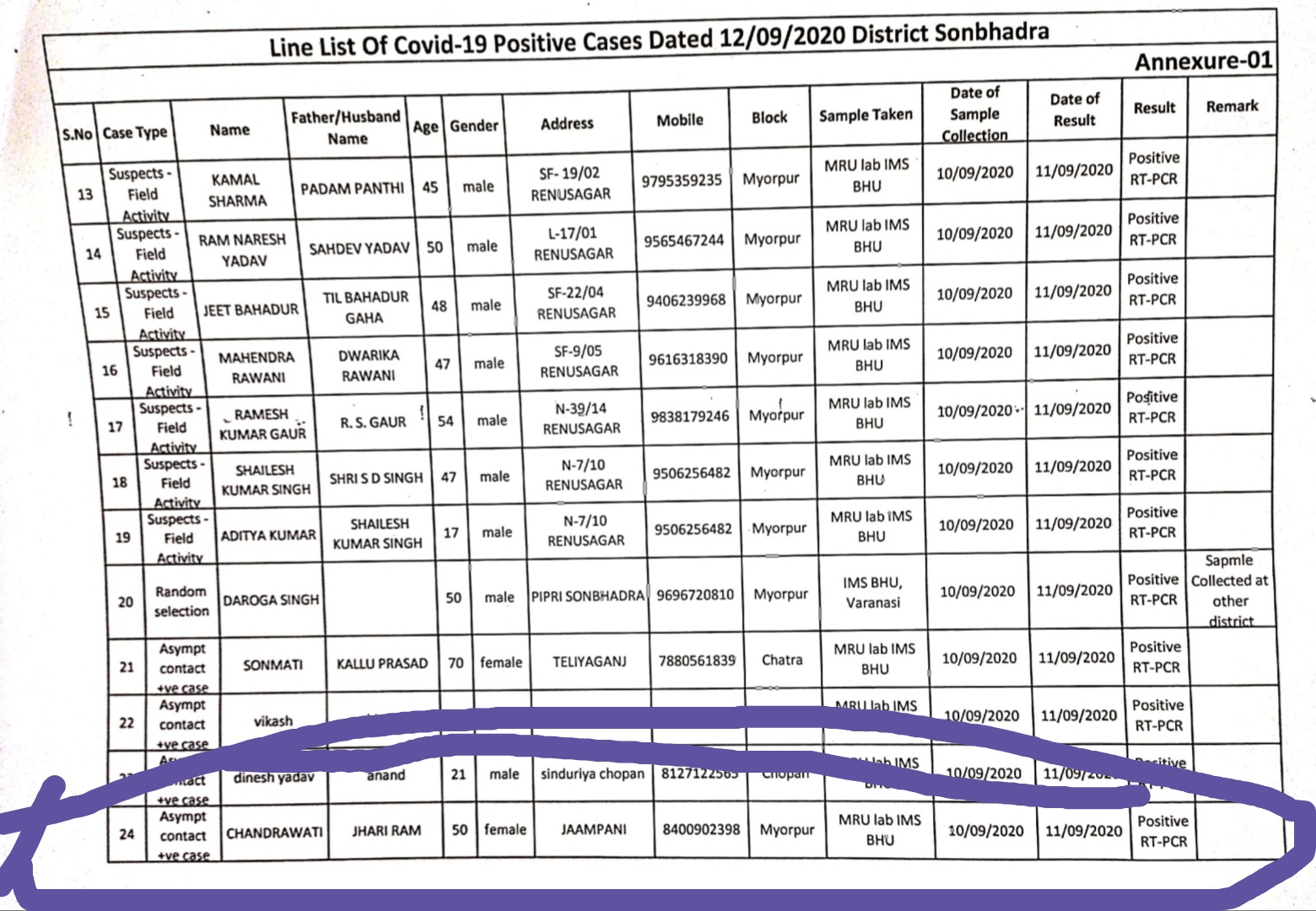 म्योरपुर विकासखण्ड अंतर्गत जामपानी निवासी एक 50 वर्ष महिला की रिपोर्ट बीते दिन कोरोना पॉजिटिव आयी है।