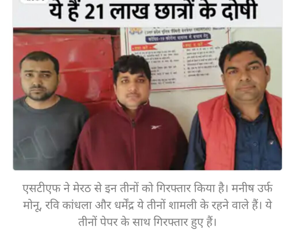 पेपर सॉल्वर्स गैंग के कुछ लोगो की हुई गिरफ्तारी, एस टी एफ कर रही जांच, मेरठ से कुछ लोगो को गिरफ्तार कर पूछताछ जारी।